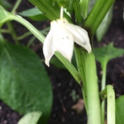 green to red. It is suppose to be an early maturing pepper arriving at 71 days. They went into the ground as small plants on May 27 (potted inside on March 11). As I count that has been about 113 days of growing, about 70 days outside. This plant is healthy with flowers but no sign of actual peppers yet. Each year I try a sweet pepper of some kind and each year they look wonderful but taste awful. They are always bitter to the taste. It could be our Minnesota cool since I know that pepper like hot days. I am hoping this year might be different since we have had so many more hot days. We will have to wait and see.