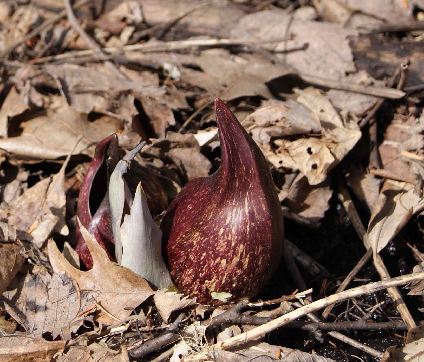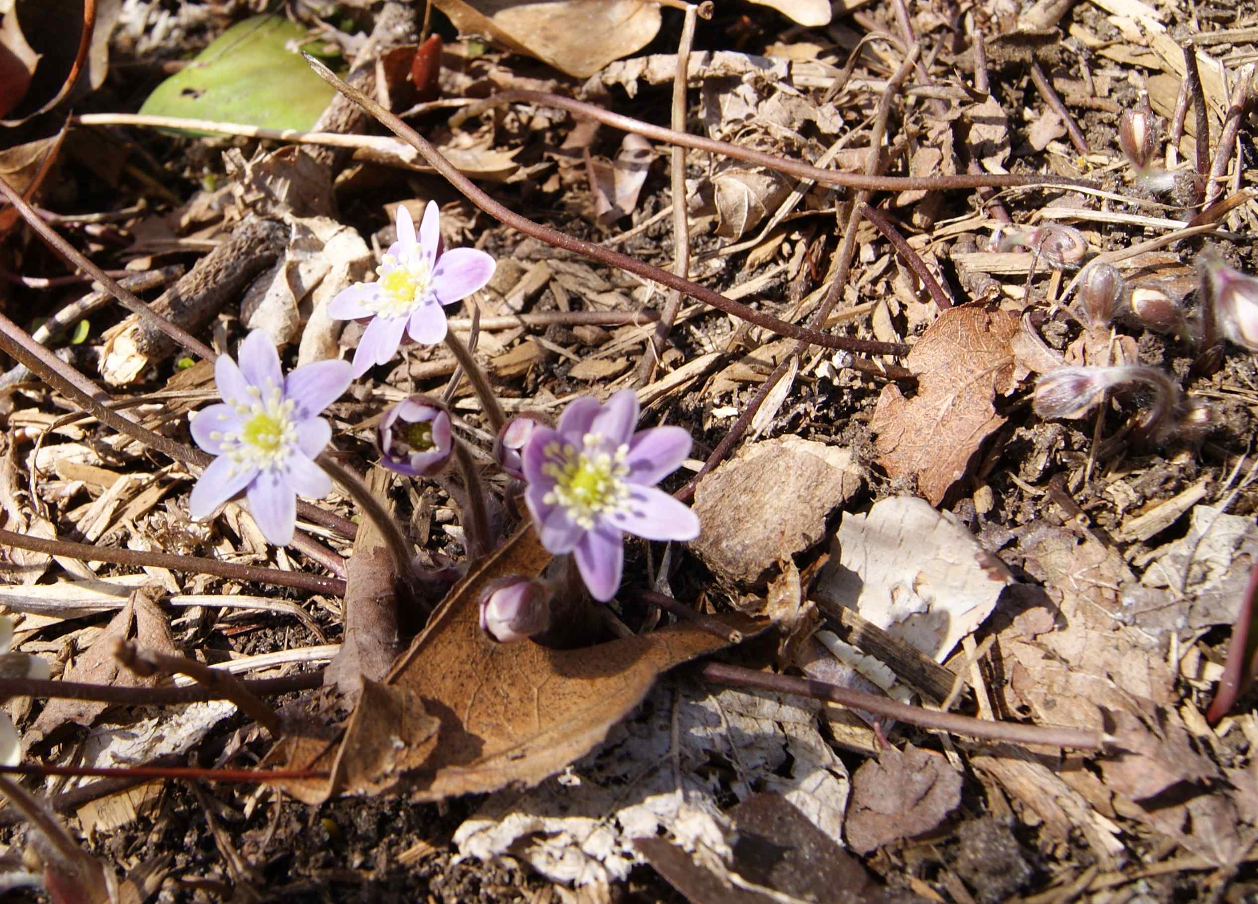 Wow- I had missed so much. There at my feet were a bunch of tiny pinkish white flowers blooming. They were right at the edge of the path and could easily be stepped on if I was not watching carefully. I continued my walk more slowing and the “all” brown woods began to show off its true colors. There was the deep burgundy of the skunk cabbage, the bright fire truck red of the dogwood bushes, a little plant called Trout Lily was showing its gray-green leaves with spots, and another lime green set of leaves was just peeking out of the ground.