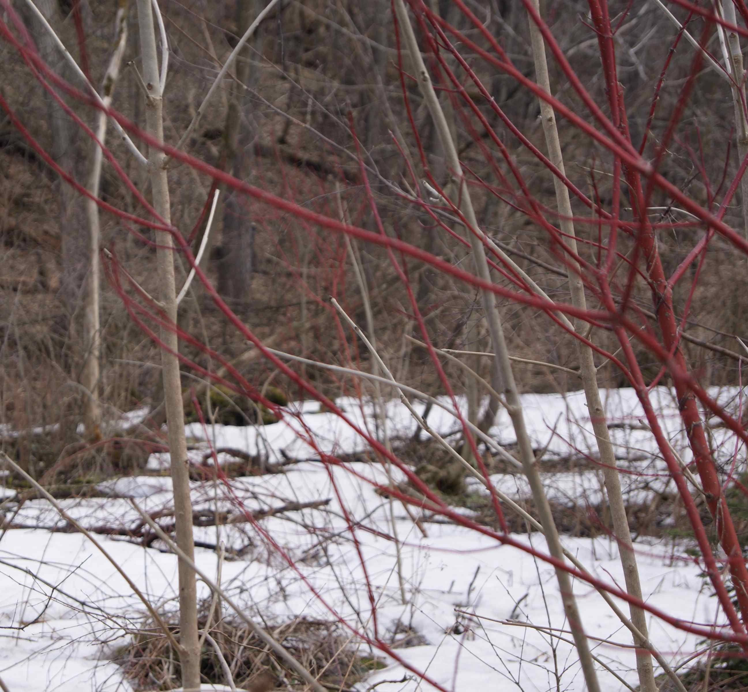 I arrived at Eloise Butler Wild Flower garden to find a completely different garden than last week. The snow was gone and it was rolling hills of brown trees, brown leaves, just plain brown. The garden had changed from snow-white to tree brown.