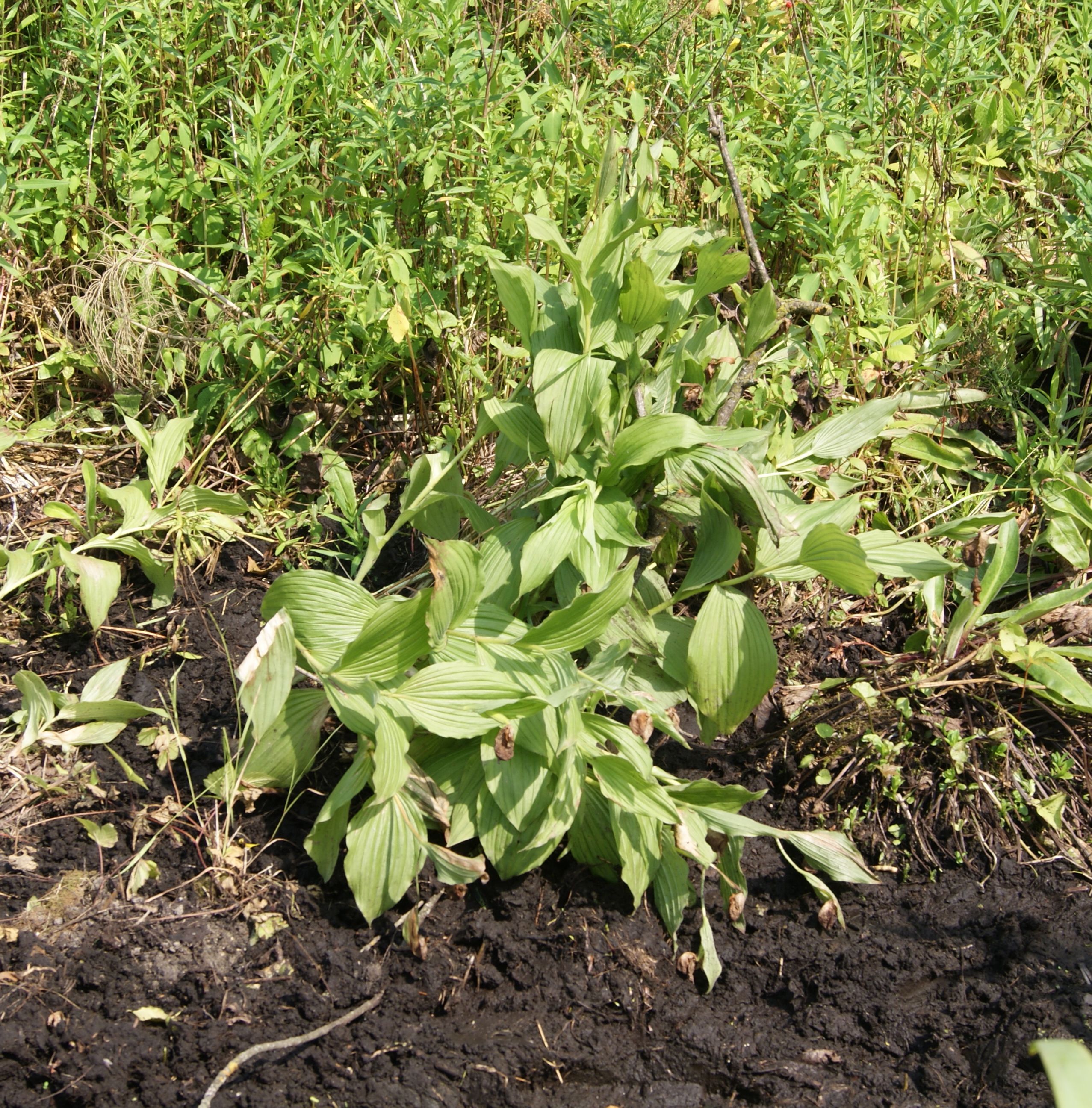 I was busy look at flowers when I noticed a group of odd-looking plants. The plant was not odd it was a Lady Slipper and it was clear the flowers on the plant had died very quickly. What was odd was the plant look like it had been moved. There were foot-prints all around it and the ground seemed to have been dug up.